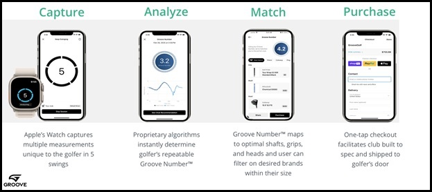 Groove operates on a business-to-business model. For an annual licensing fee, a golf course receives access to the software along with an Apple Watch, an iPhone, a set of the most frequently recommended shafts, All-Fit connectors, and comprehensive training.